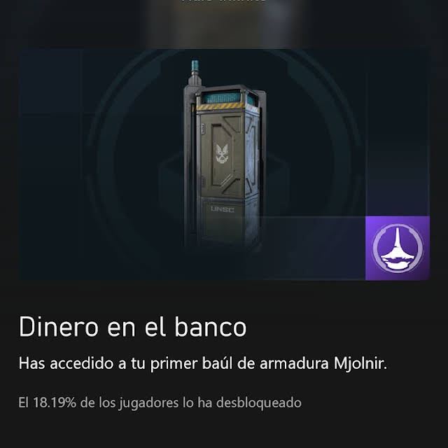 Conseguido esta noche en el directo , el logro de Halo Infinite "Dinero en el banco" Haz accedido a tu primer baul de armadura Mjolnir.